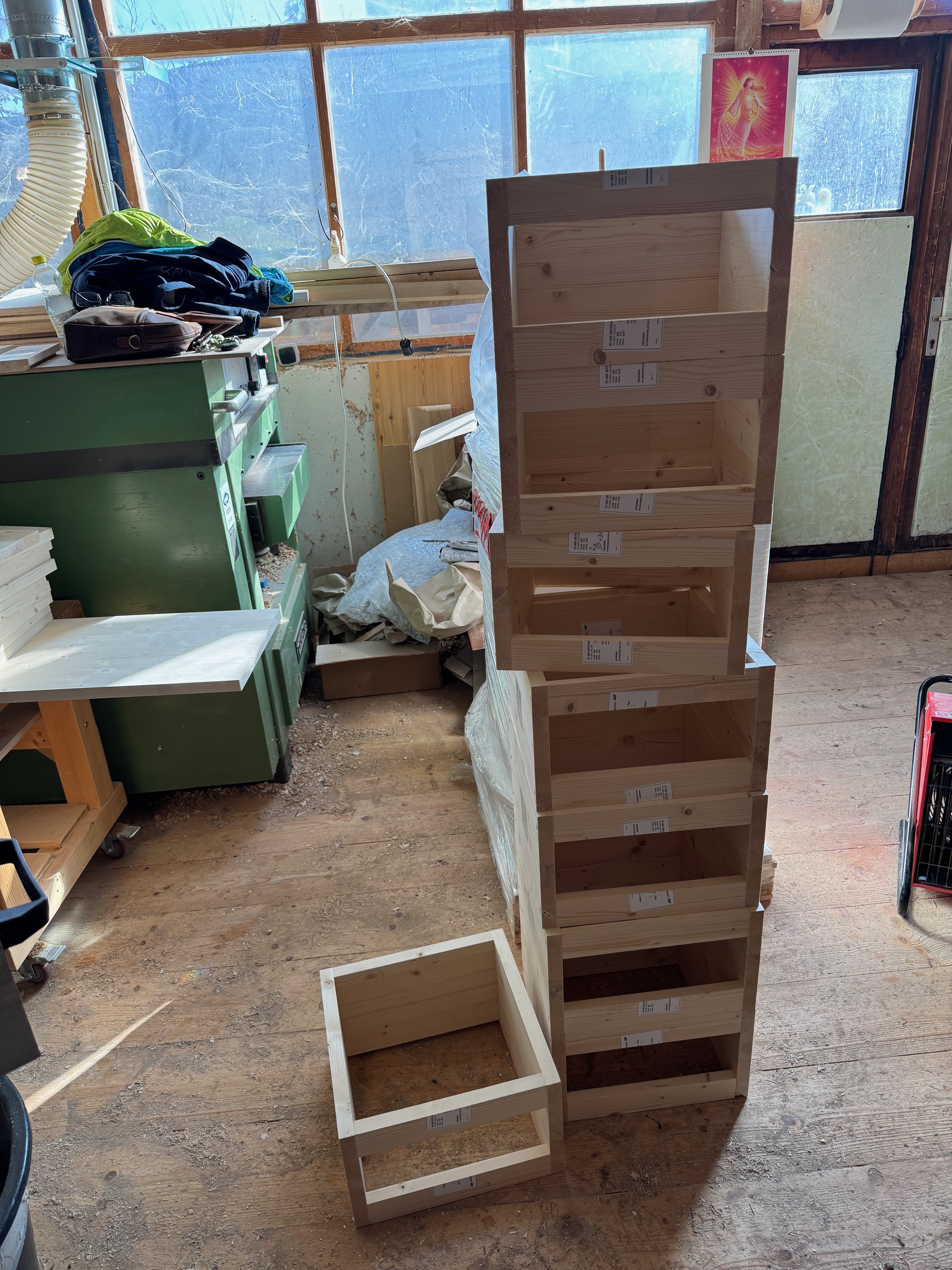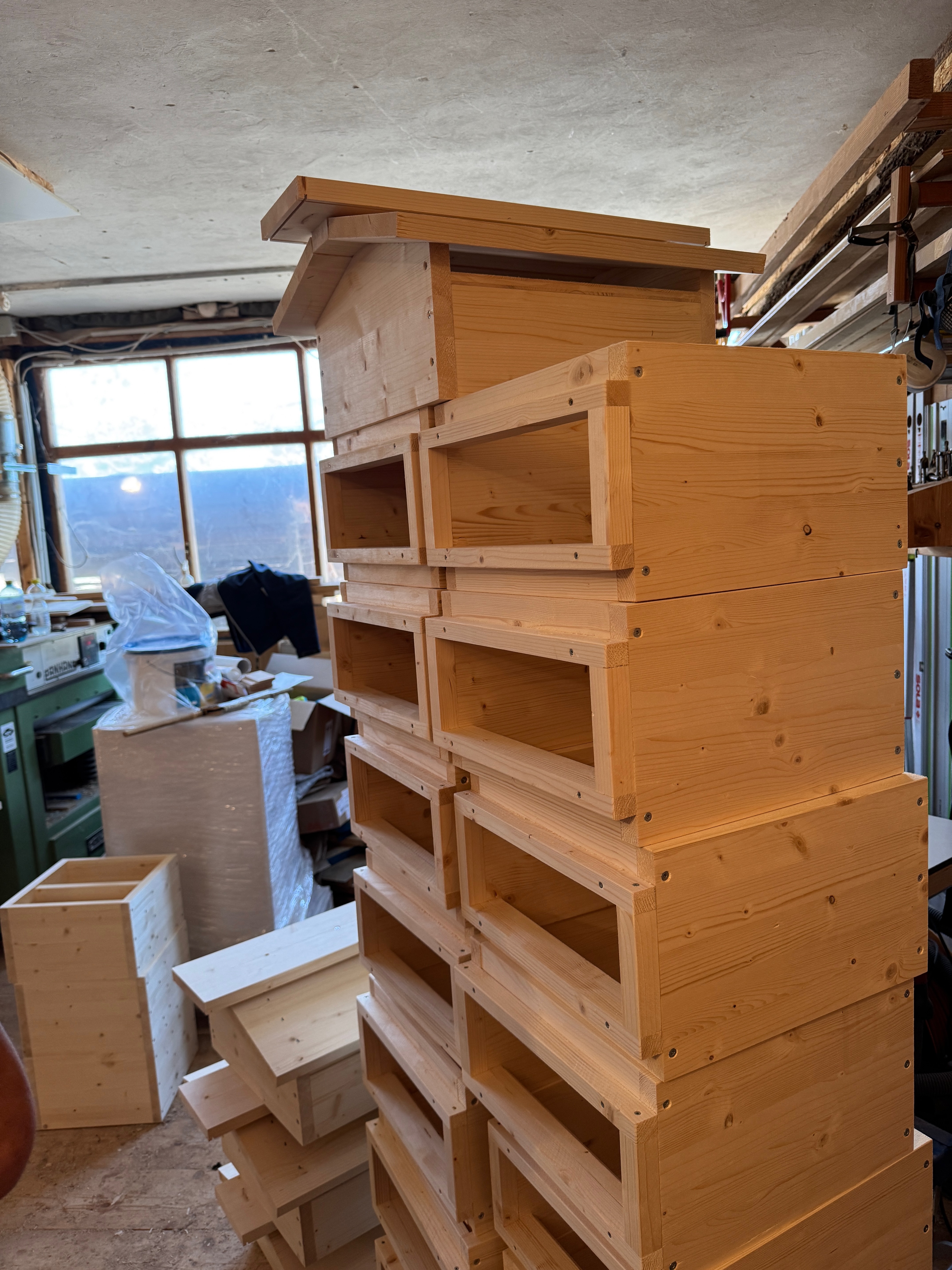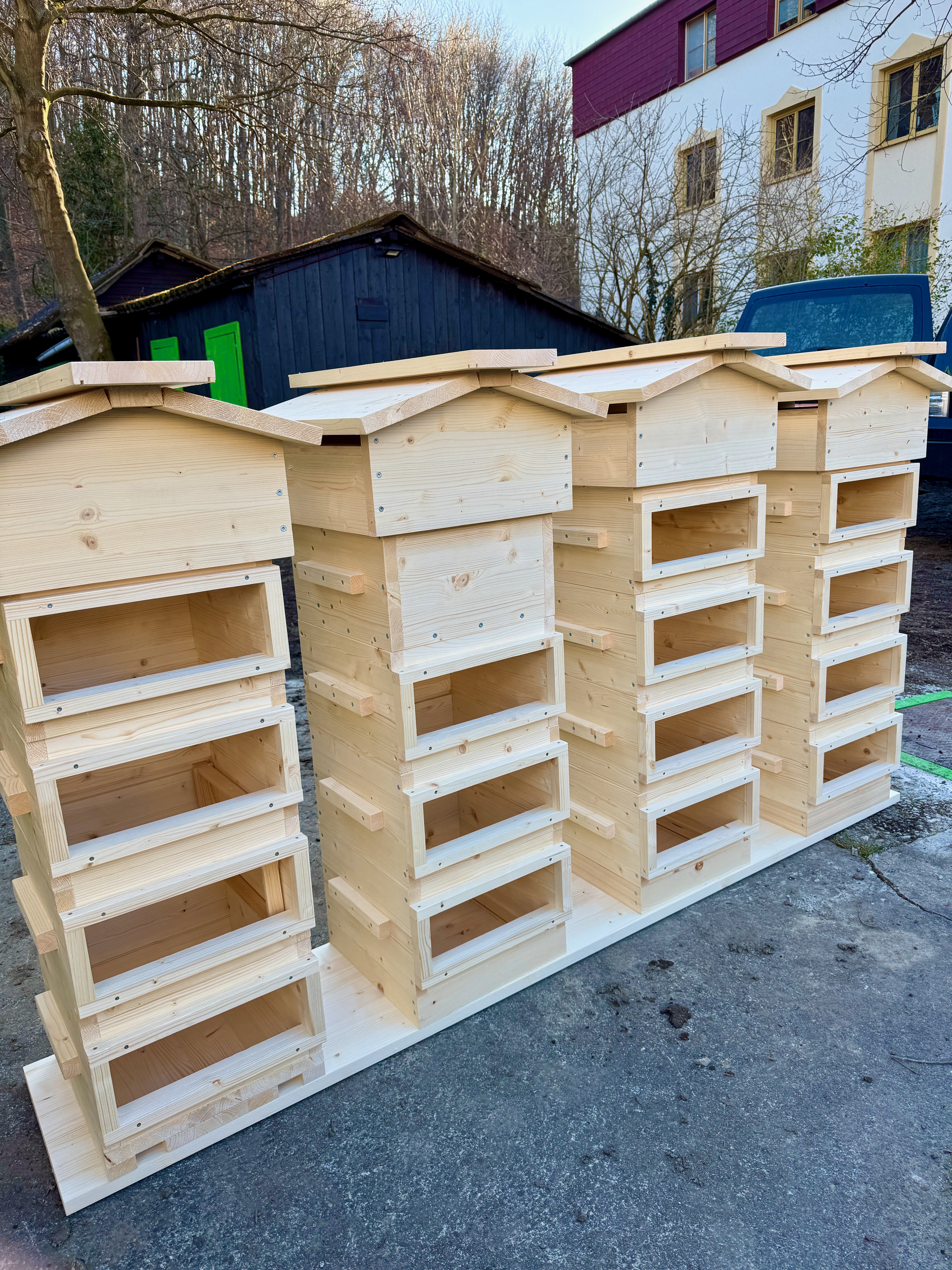 Wir halten drei Carnica-Bienenvölker und imkern nach der naturnahen Methode von Abbé Warré. Unsere Warré-Beuten haben wir in Eigenarbeit nach den originalen Bauanleitungen gefertigt und legen großen Wert auf eine möglichst wesensgemäße Bienenhaltung.